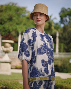 Delicate wildflowers bloom across a crisp white backdrop in deep blue tones. The intricate, almost embroidered lines give this print a timeless feel—fresh, elegant, and quietly romantic. A modern take on classic florals that feels light, refined, and easy to wear.